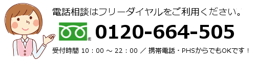電話相談はフリーダイヤル ( 0120-664-505 ) を、